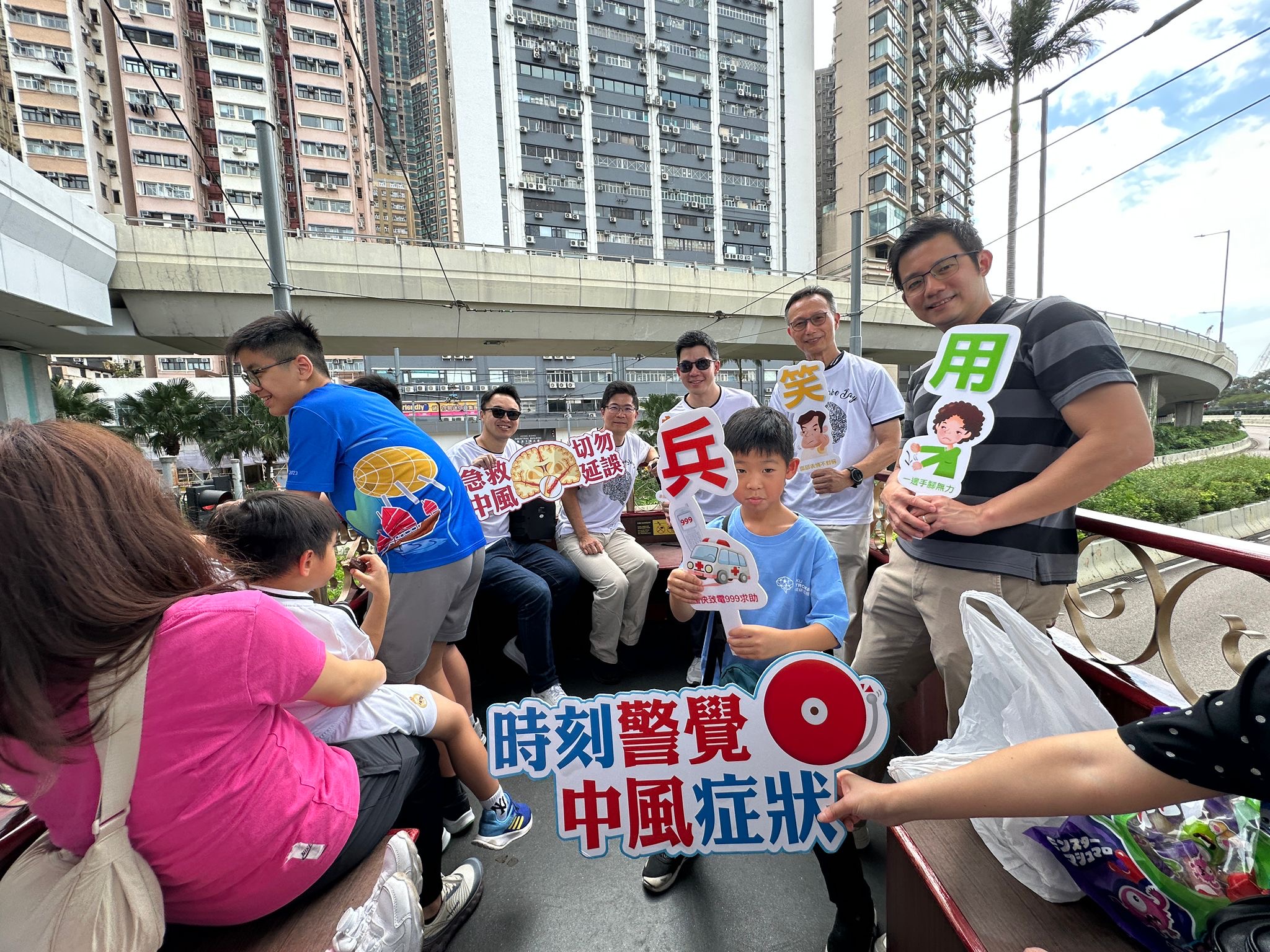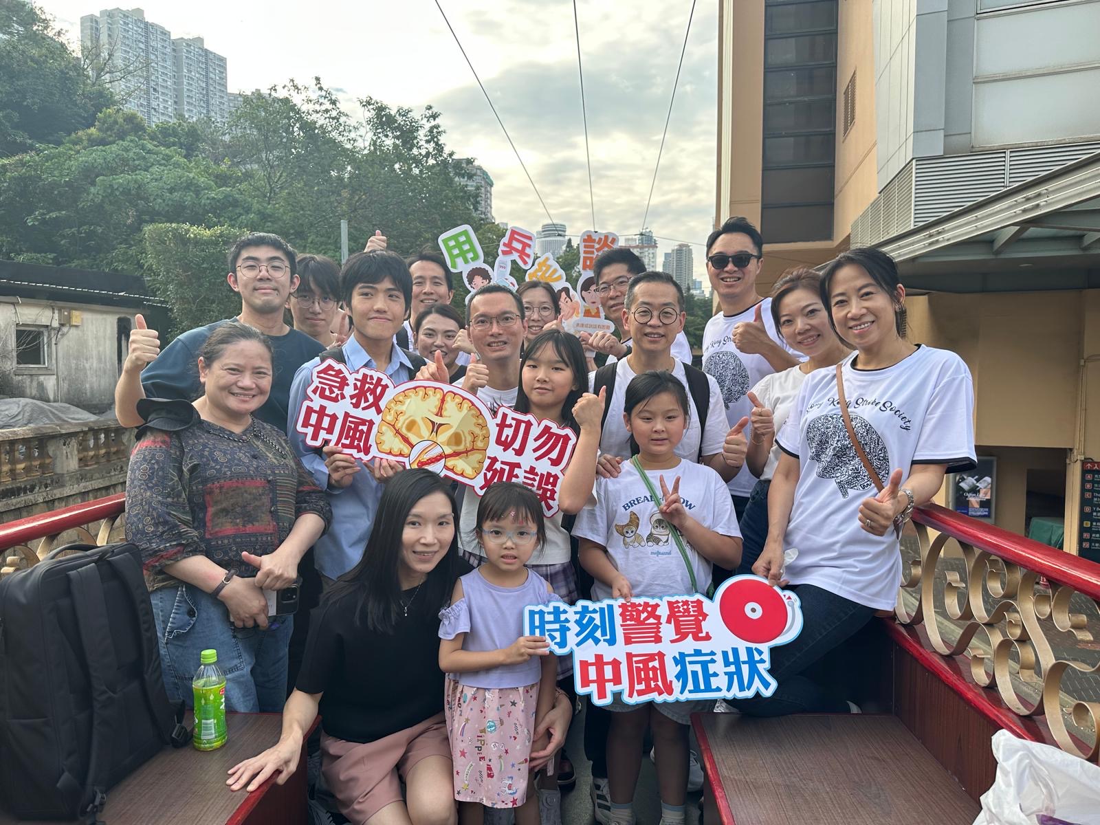 The Hong Kong Stroke Society commemorated World Stroke Day 2025 with an encore of the successful 2024 Party Tram Tour, which took place on 26 October 2025. The event began again at Whitty Street Tram Depot in the Western District, passed through Sheung Wan, Central, Wan Chai, Causeway Bay, and reached North Point this year, before turning back to circle around Happy Valley and finally back to Whitty Street. Council members, stroke nurses, and medical students spread the word of Stroke Awareness to the public via slogans and props and banners.